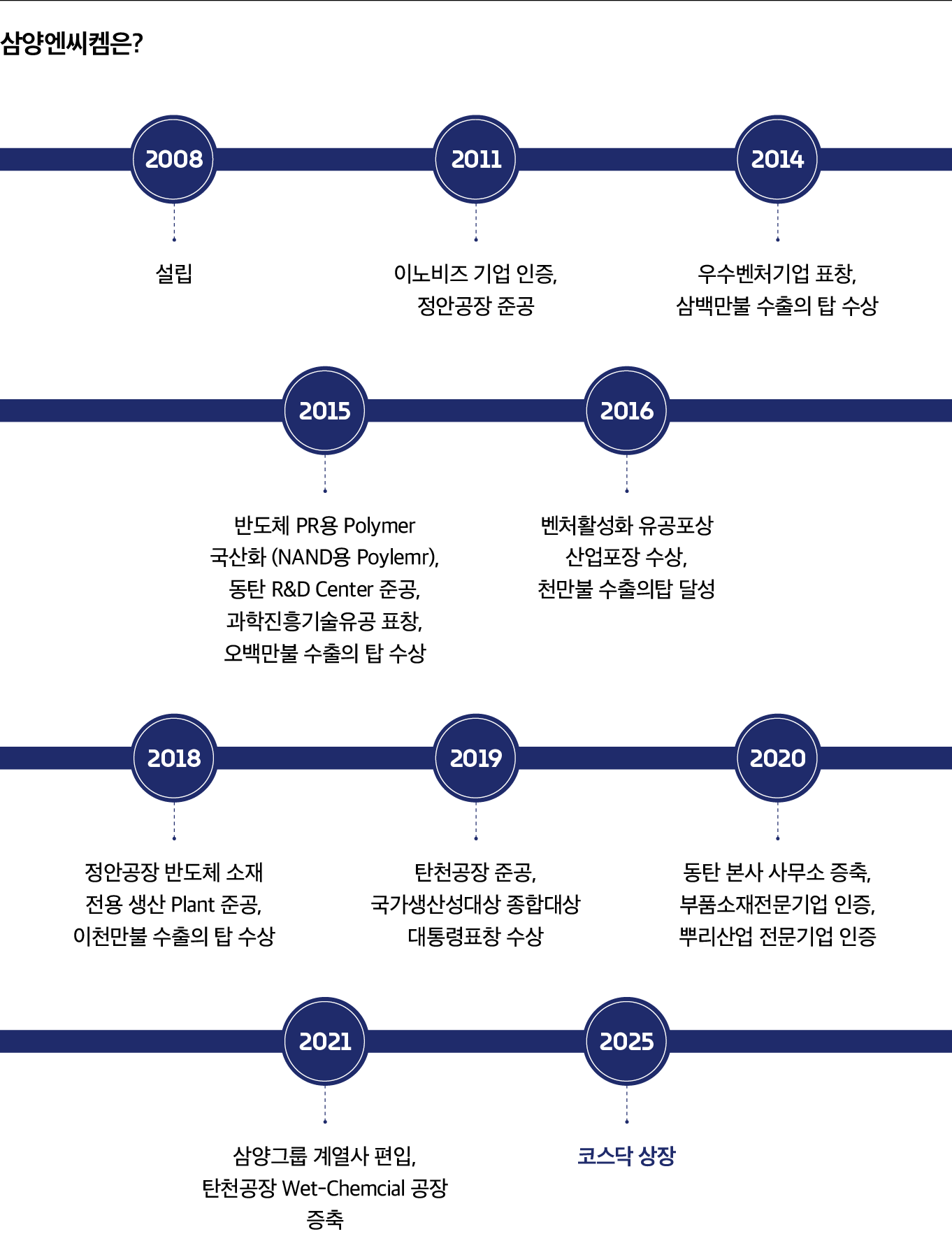 삼양엔씨켐은 합성, 중합, 정제 기술을 포함한 핵심 기술을 통해 99.9% 이상의 고순도 PR용 폴리머와 PAG를 개발·생산하고 있다. 정안 공장과 탄천 공장을 중심으로 한 생산 시설은 2023년 기준 PR용 폴리머 240톤, PAG 20톤, Wet Chemical 2,400톤의 생산 능력을 보유하고 있다. 또한 반도체용 포토레지스트(PR) 중에서도 하이엔드 제품인 EUV PR용 폴리머와 PAG, 그리고 HBM(High Bandwidth Memory)용 BUMP 폴리머 사업을 본격화하기 위해 시설을 확충했다.